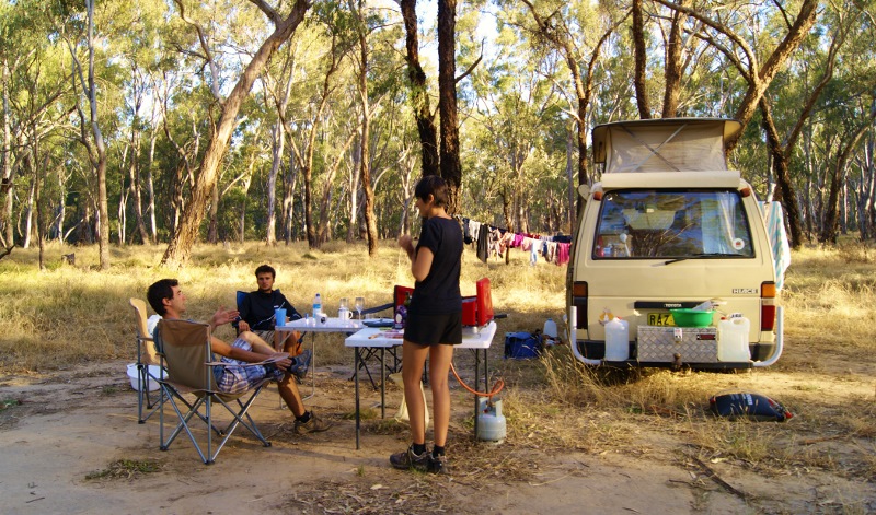 En attendant, Trystan et Inès qui nous ont rejoints dans le même but s’installent avec nous pour la durée d’un weekend, dans la forêt, au bord du Murray.